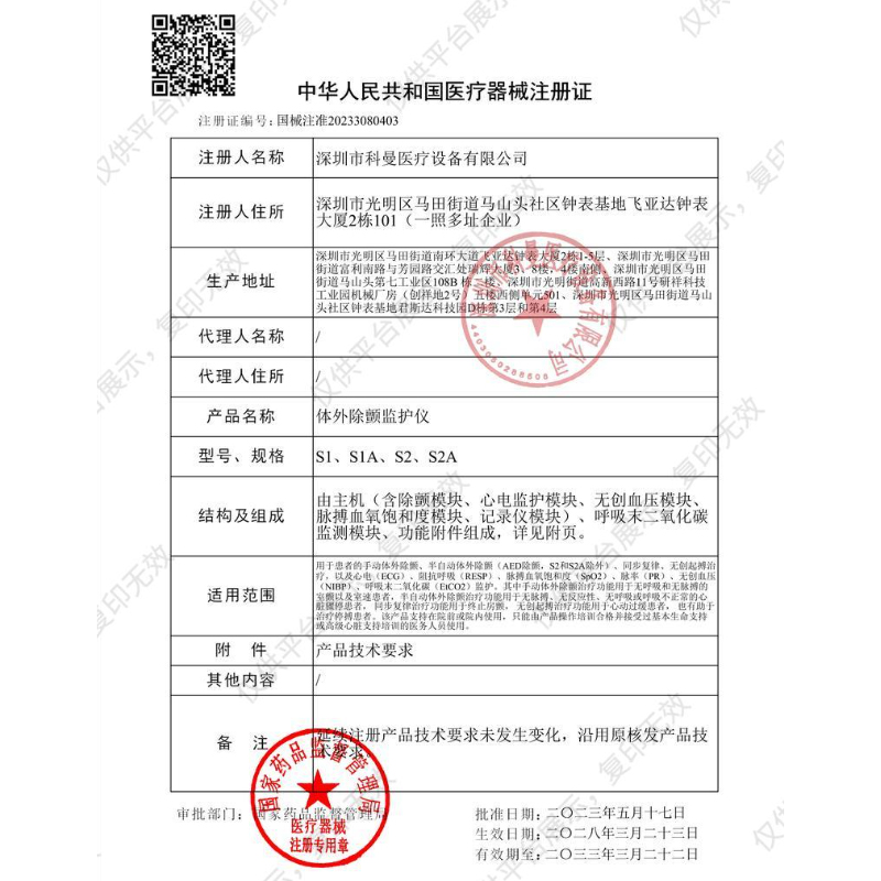科曼自動(dòng)體外除顫儀 S1A 投訴電話:021-56532303 訂購(gòu)聯(lián)系電話: 021-51601230