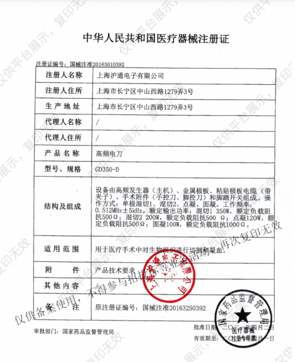 - 產(chǎn)品適用范圍:用于醫(yī)療手術(shù)中對生物組織進行切割和凝血。