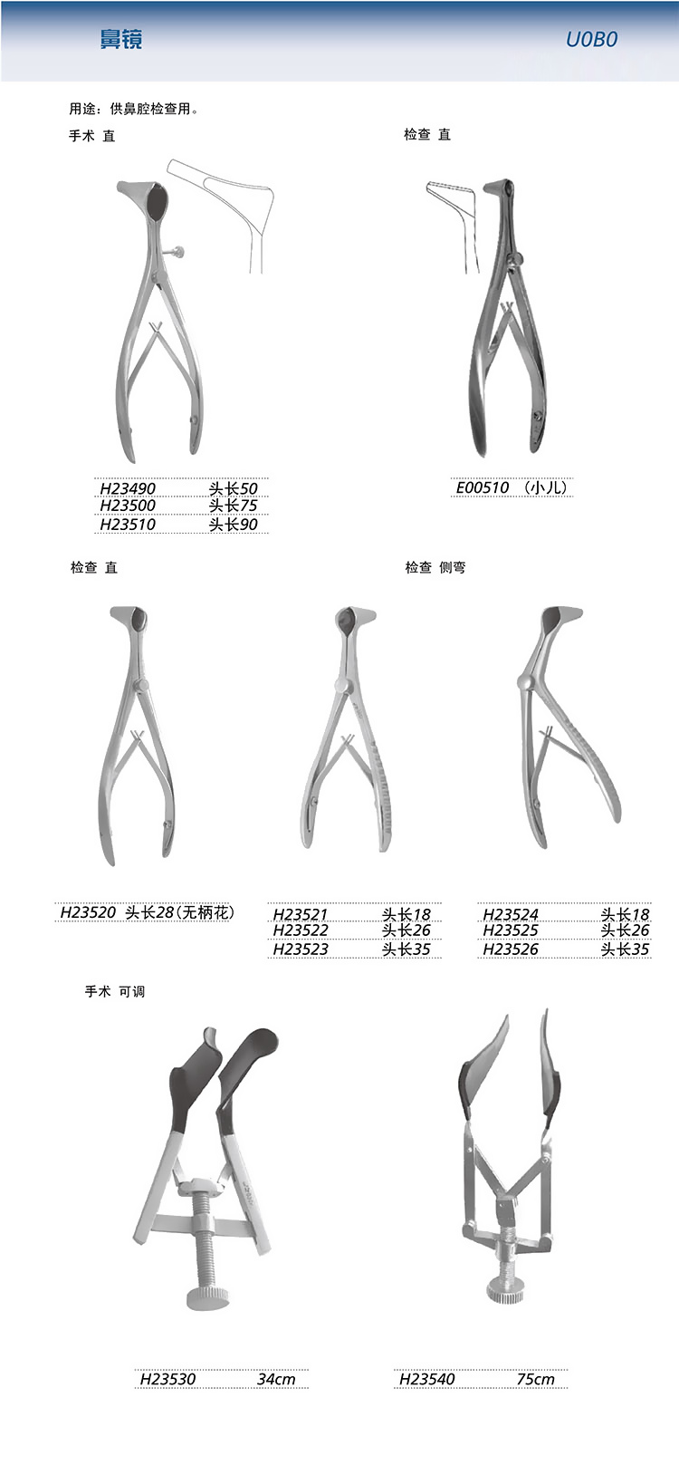 上海金鐘 鼻鏡 產(chǎn)品表