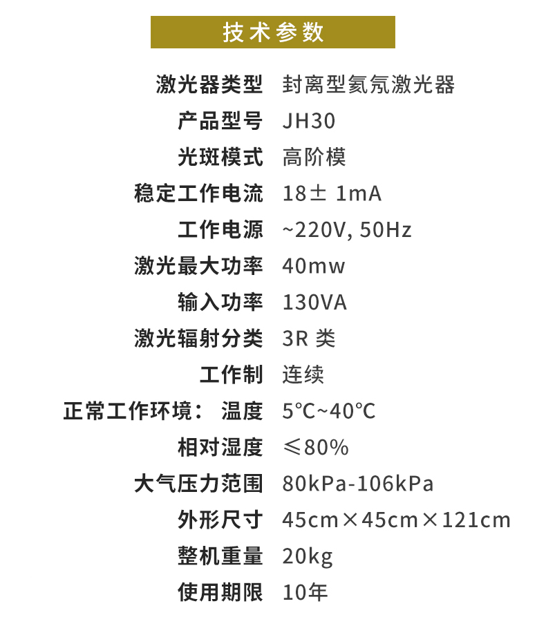 嘉光 氦氖激光治療儀 JH30(智能型)性能指標(biāo):