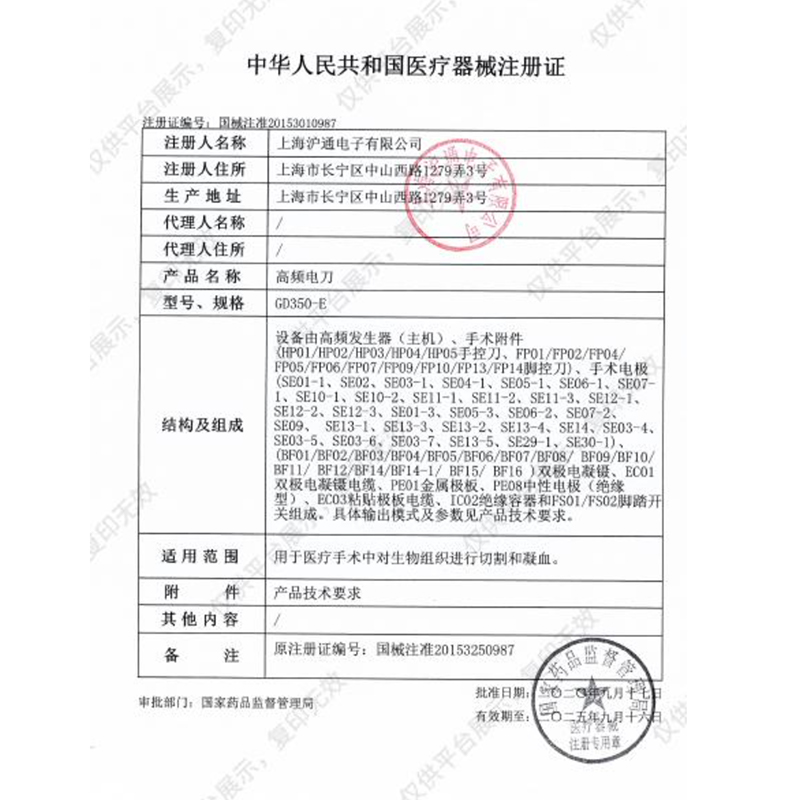 - 滬通公司設有上海和常熟兩個研發(fā)制造基地,分別于電外科設備和相關配套附件。配以強大的售后服務團隊,公司將繼續(xù)為客戶提供“穩(wěn)定、可靠”的產(chǎn)品和售后支持。公司業(yè)務將繼續(xù)圍繞以下產(chǎn)品線發(fā)展壯大:--多功能高頻電刀:多功能電刀GD350-B5,GD350-B4A等