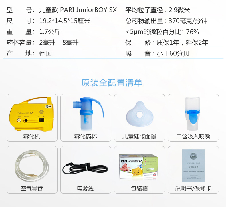 德國PARI 兒童霧化器 JuniorBOY 產(chǎn)品參數(shù):