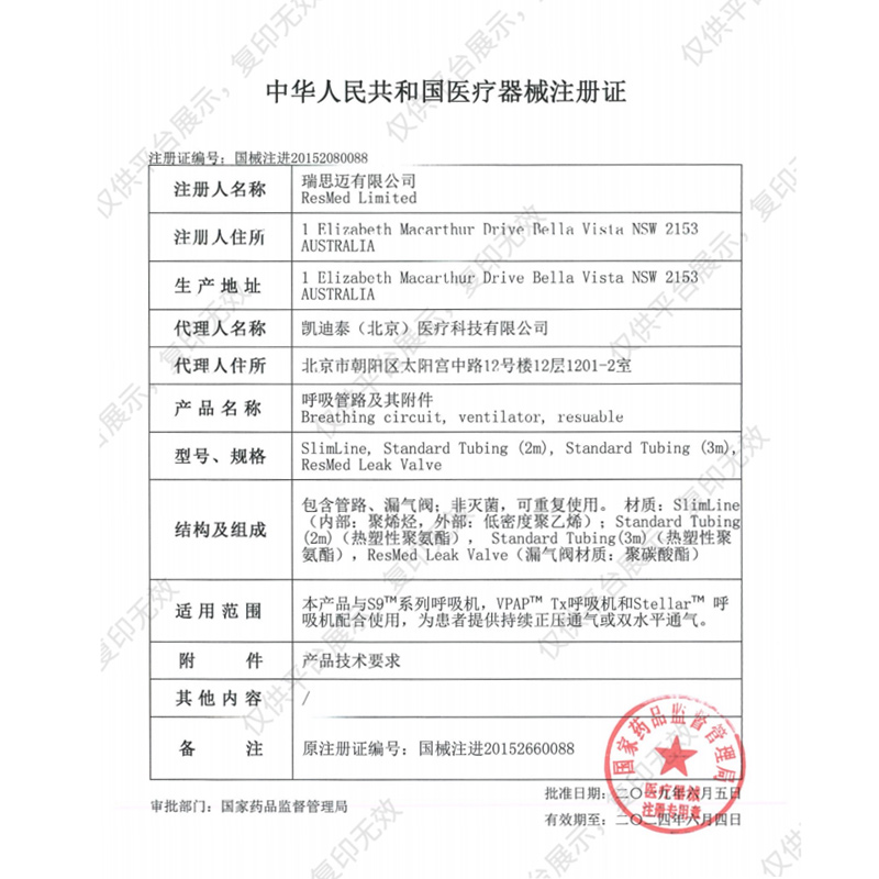 - 生產(chǎn)企業(yè):瑞思邁公司 RESMED