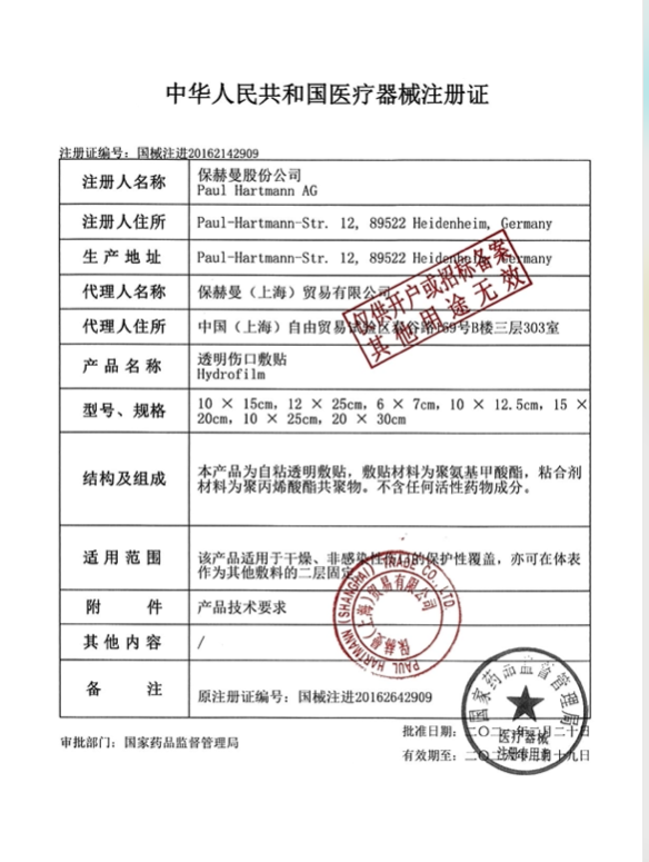 - 生產(chǎn)企業(yè):德國保赫曼 PAUL HARTMANN AG