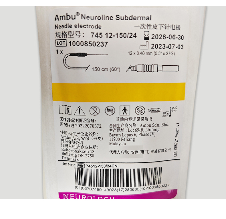 • 商品名稱:AMBU 丹麥安保一次性皮下針電極 745 12-150/24