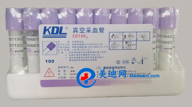 康德萊真空采血管2ml 紫管 玻璃管 EDTAK2