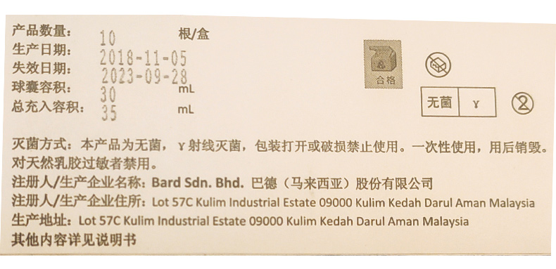 • 生產(chǎn)企業(yè):巴德(馬來西亞)股份有限公司Bard Sdn. Bhd.