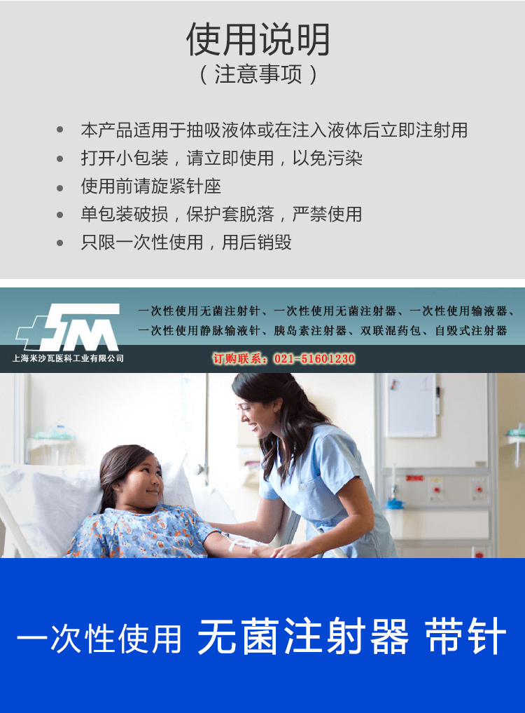 本公司專業(yè)經(jīng)銷棱牌(米沙瓦)一次性使用無菌注射器 ,批發(fā)兼零售,在全國醫(yī)療單位中享有較高的知名度。公司立足上海,服務(wù)全國,信譽好。經(jīng)銷品種包括醫(yī)用電子儀器、精密醫(yī)療設(shè)備、一次性醫(yī)療用品、各類??破餍?、實驗儀器設(shè)備、齒科設(shè)備、醫(yī)用消耗器材、進口醫(yī)療器械、家用醫(yī)療器械、家用護理保健產(chǎn)品等。歡迎各地客戶預(yù)約定貨。