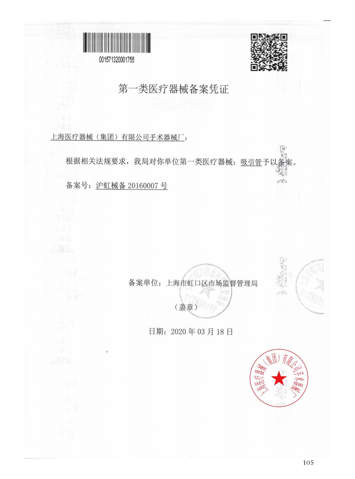 - 產(chǎn)品注冊(cè)證號(hào):滬虹械備20160007號(hào)