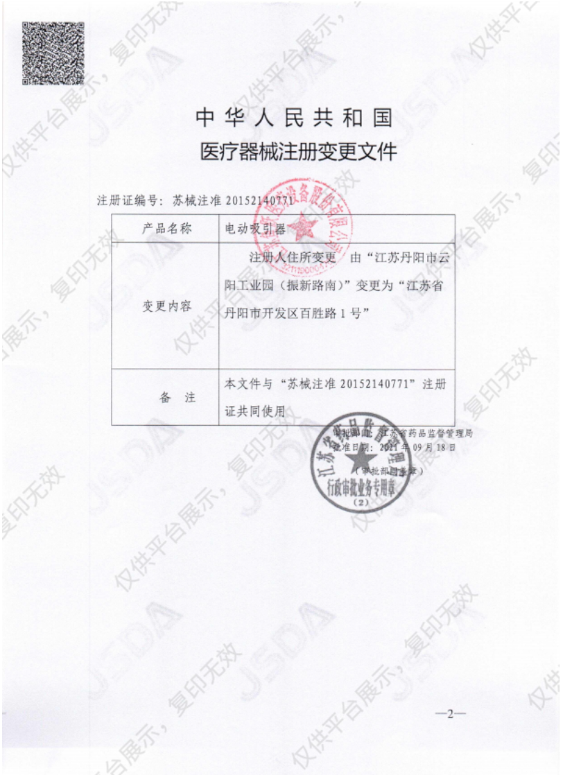 - 產(chǎn)品注冊證號:蘇械注準(zhǔn)20152140771
