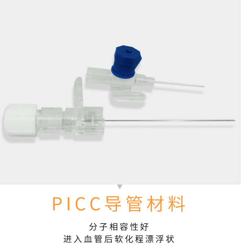 • PICC分子相容性好,PICC導(dǎo)管進入血管后會軟化程漂浮狀。