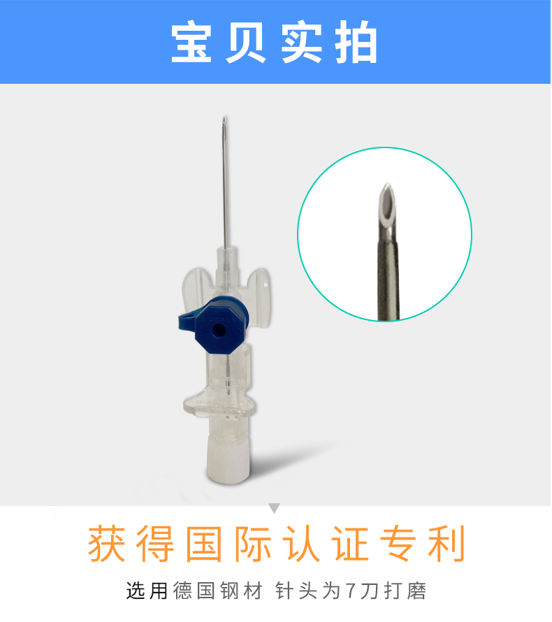 •  德國貝朗靜脈安全性留置針針頭材料選用德國鋼材,針頭打磨為7刀打磨。(普通針為4刀)