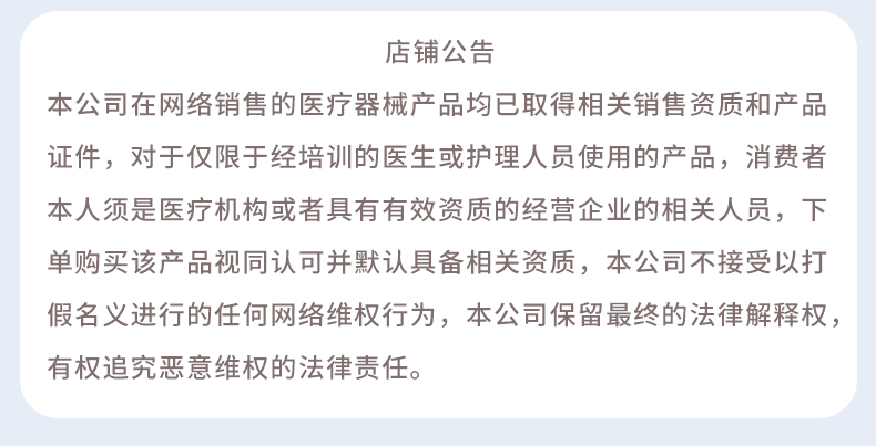 2、本產(chǎn)品僅銷售給醫(yī)療機(jī)構(gòu)和具有有效資質(zhì)的經(jīng)營企業(yè)