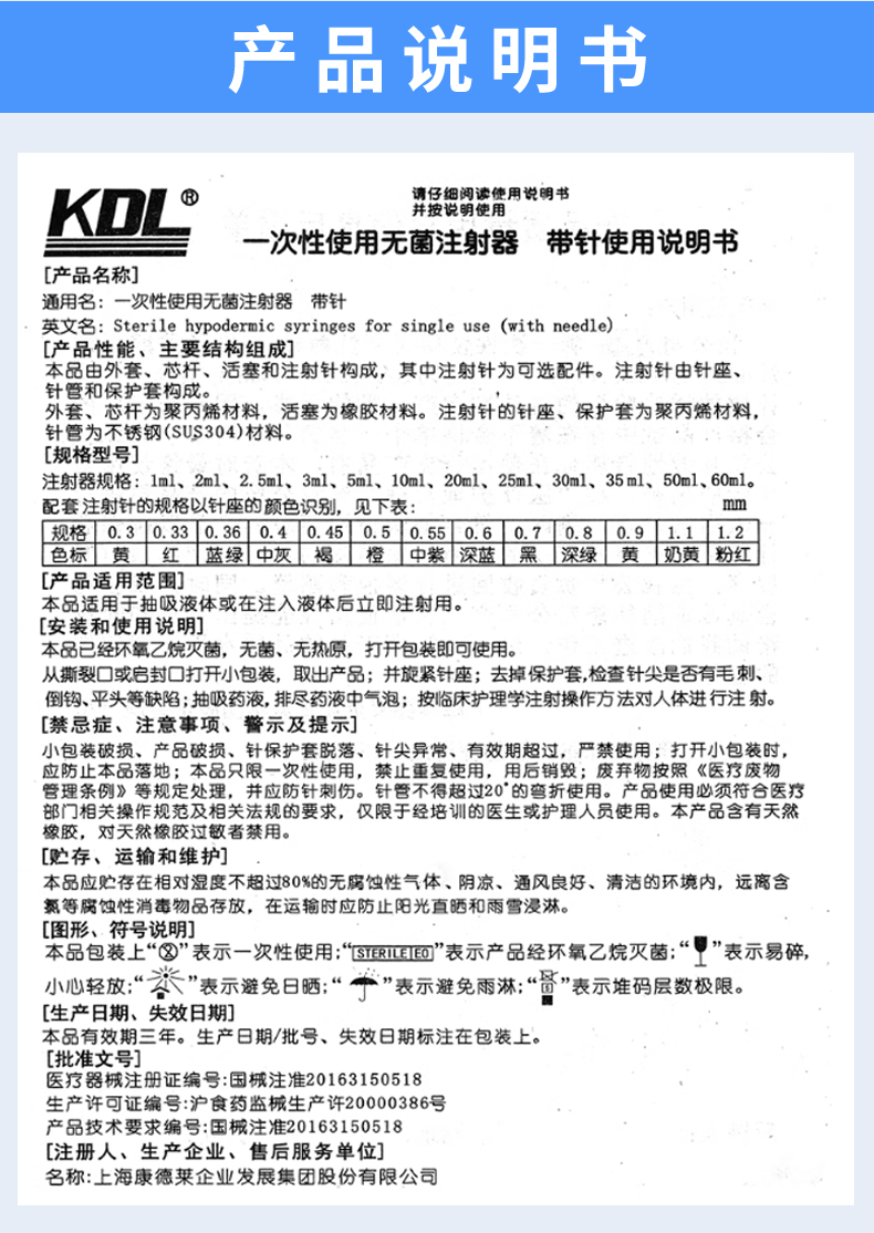 • 生產(chǎn)企業(yè):上海康德萊企業(yè)發(fā)展集團(tuán)股份有限公司
