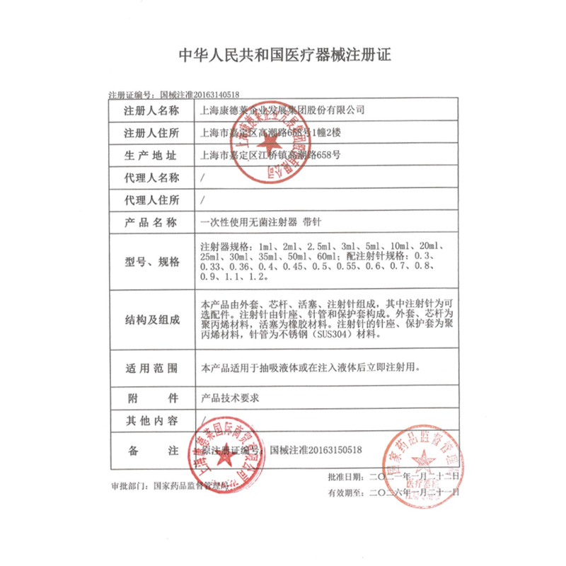 • 商品名稱:康德萊一次性使用無菌注射器 螺口