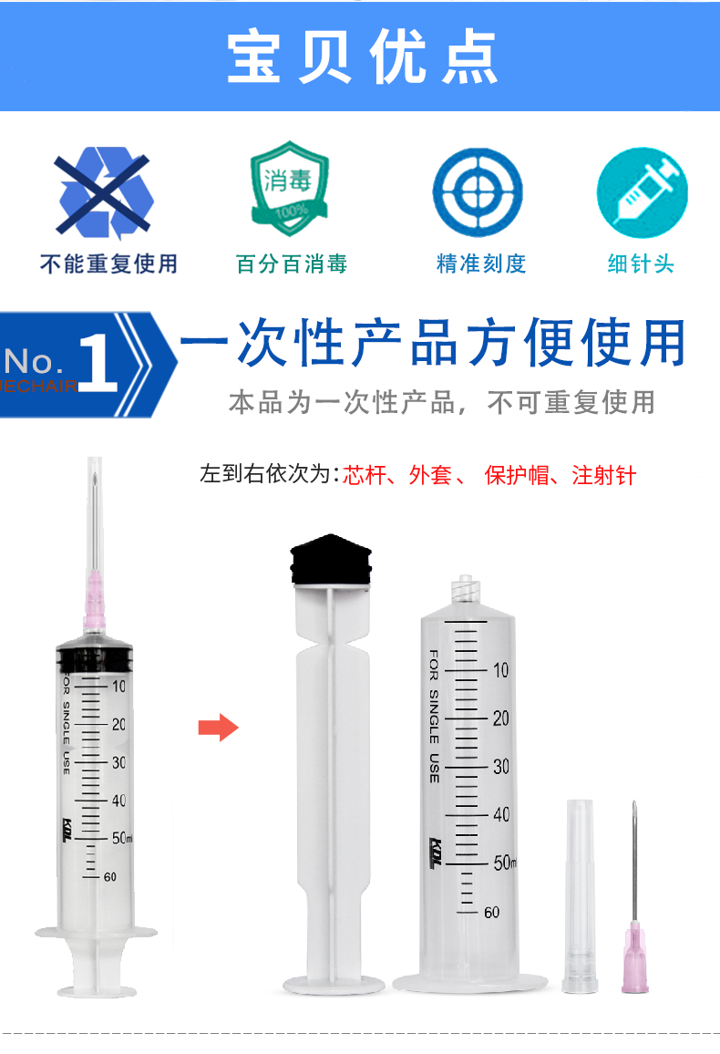 康德萊 一次性使用螺口注射器 50ml 產(chǎn)品特點(diǎn):