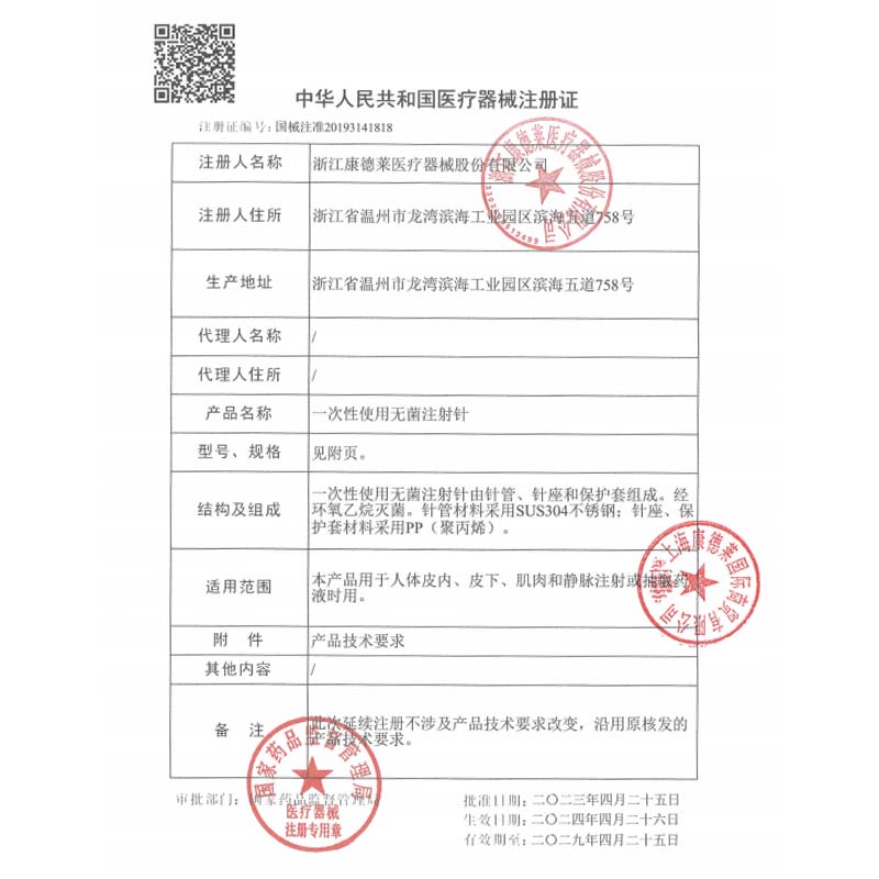 手機(jī)掃碼:康德萊一次性使用無菌注射針 30G