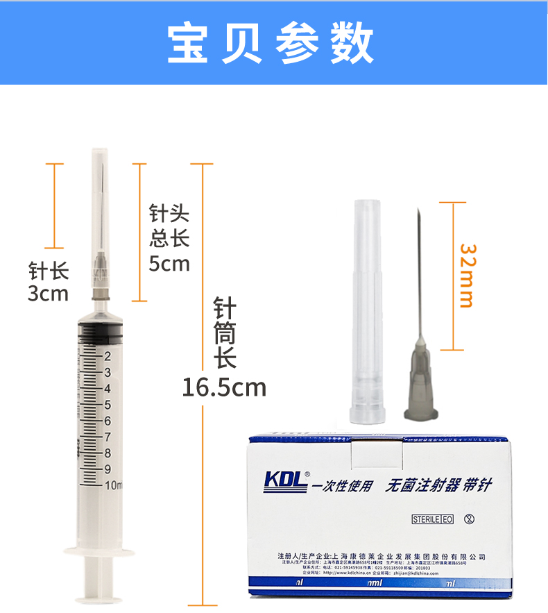 • 康德萊一次性使用無(wú)菌注射器平口 10ml 帶針 0.7×32mm