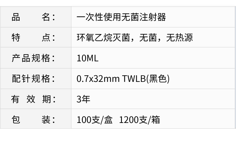 • 品名:一次性使用無(wú)菌注射器 帶針