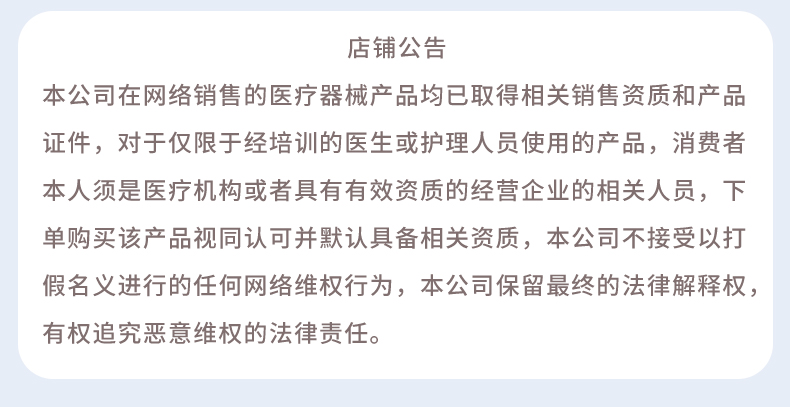 注明:購(gòu)買(mǎi)者購(gòu)買(mǎi)后需要提供相關(guān)資質(zhì),如果不提供相關(guān)資質(zhì)證明,自行下單者則默認(rèn)為購(gòu)買(mǎi)者為個(gè)人用于非醫(yī)療相關(guān)使用場(chǎng)景。使用場(chǎng)景為非醫(yī)療器械場(chǎng)景不受說(shuō)明書(shū)使用人群限制。