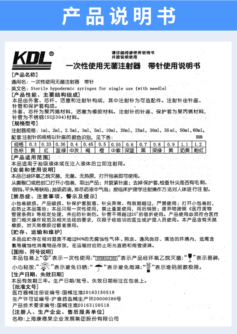 • 產品適用范圍:本產品適用于抽吸液體或在注入液體后立即注射用。